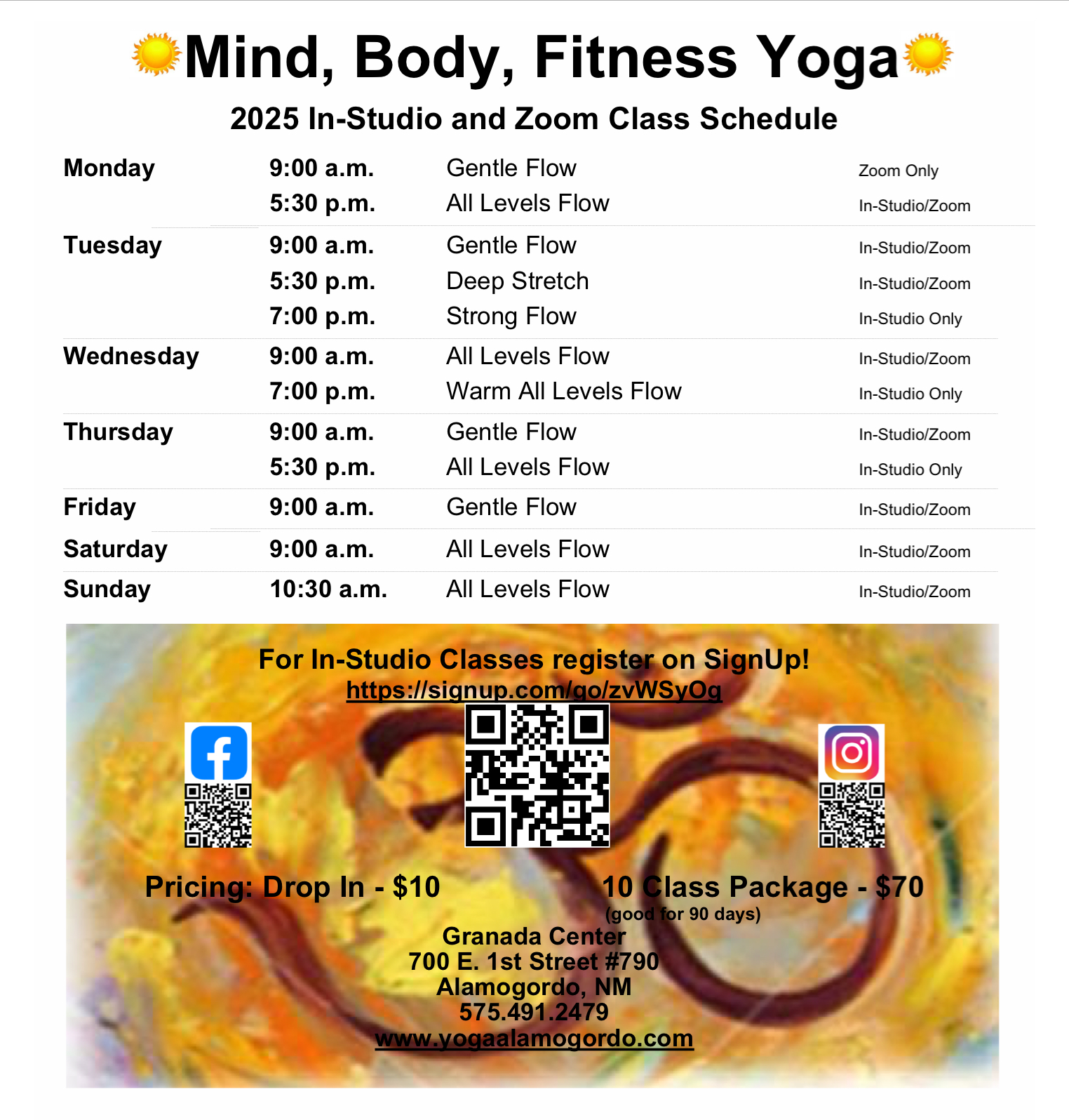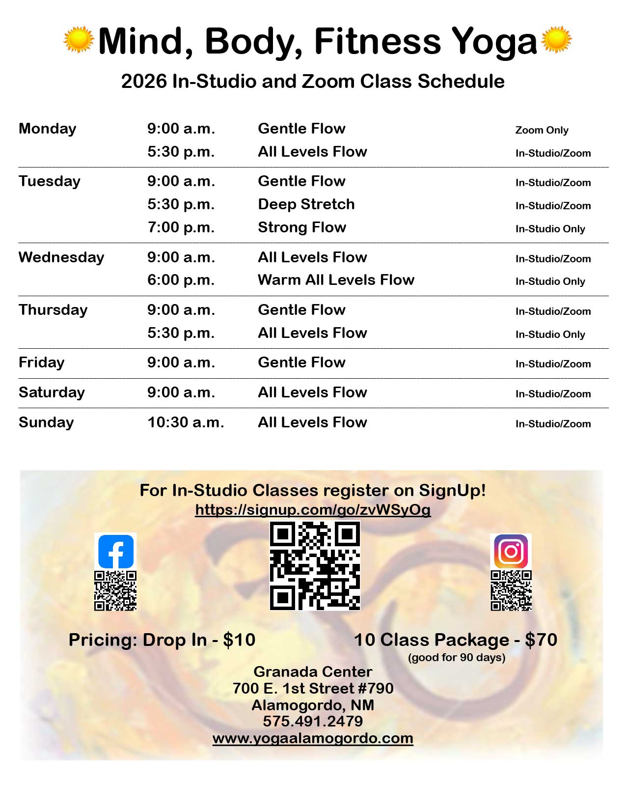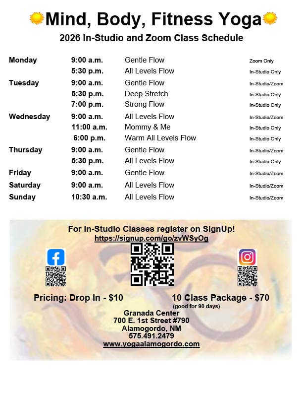 Mind, Body, Fitness Yoga offers in-studio yoga classes with a limited number of spots available. Please make sure you register by clicking the link below to reserve your place in the next class.
